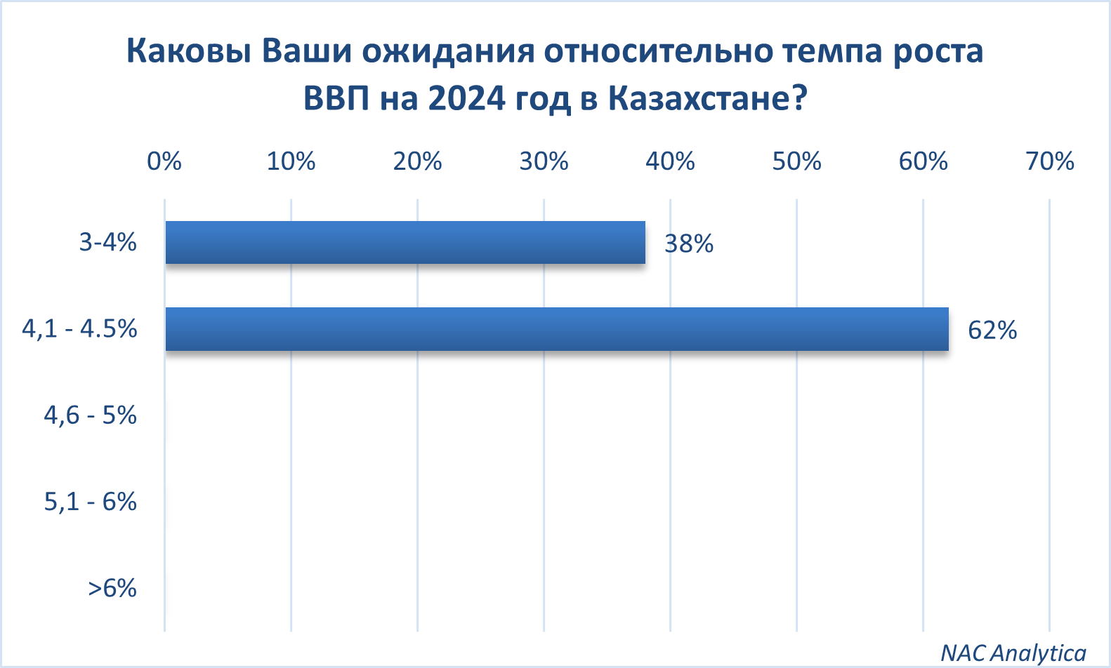 63% опрошенных ожидают темпы роста ВВП на уровне 4,1-4,5%, остальные 37% склоняются к более консервативной оценке в диапазоне 3-4%.