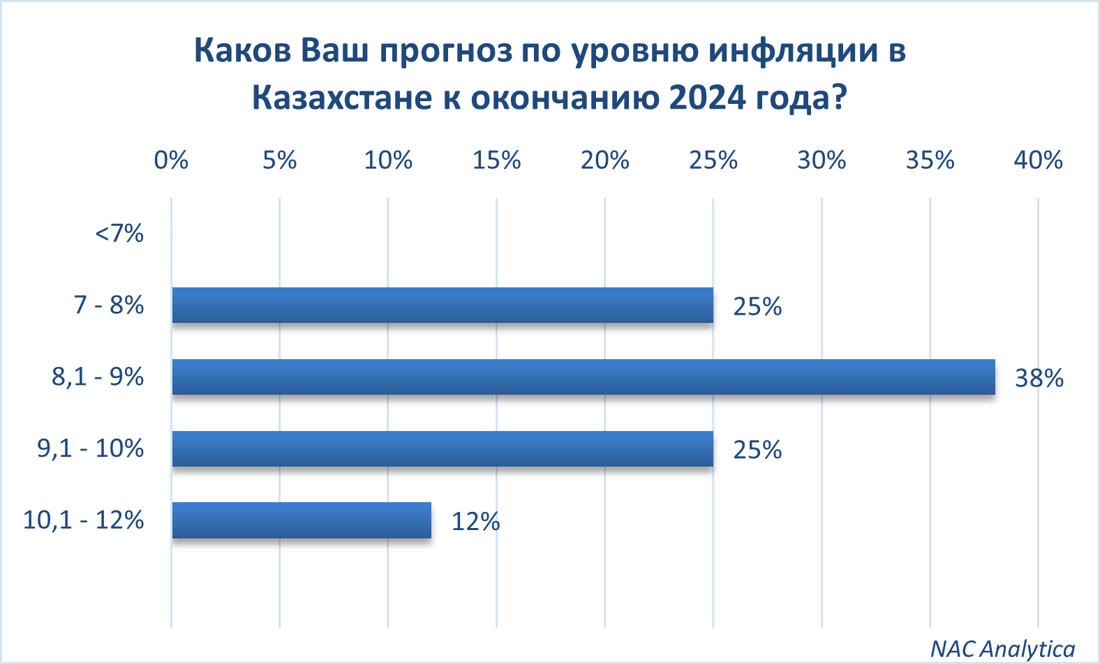 На четвертом заседании Клуба Экономистов NAC Analytica был проведен опрос среди ключевых экспертов для анализа их прогнозов и ожиданий относительно экономической ситуации в Казахстане на 2024 год. Участниками опроса стали представители Национального Банка Республики Казахстан, Казахстанского института стратегических исследований (КИСИ), Института экономических исследований, Центра исследований прикладной экономики (AERC), а также аналитического центра Talap.